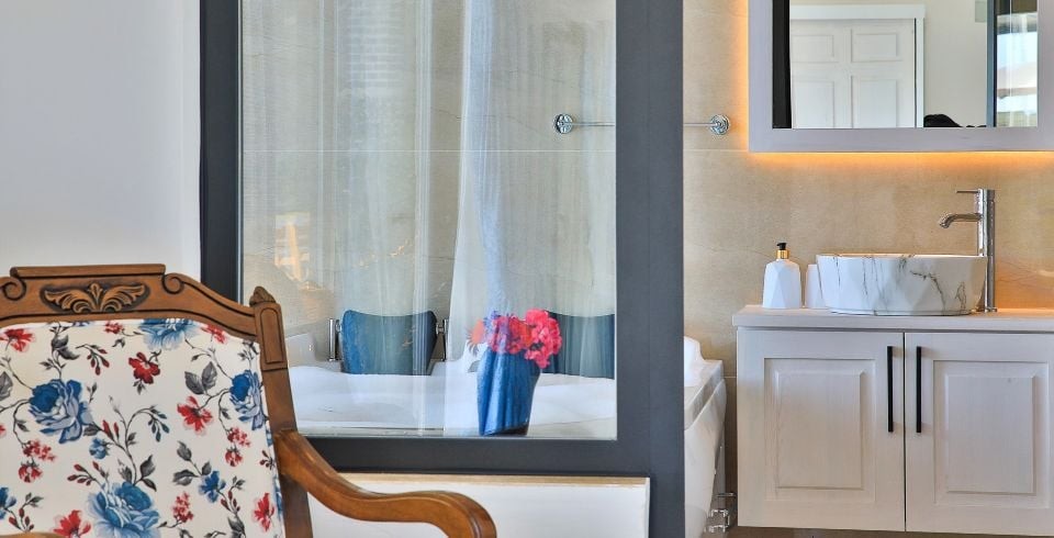 1. Yatak Odası : Çift kişilik yatak, klima, komodin, elbise dolabı, makyaj masası, banyo ve lavabo, jakuzi bulunmaktadır.