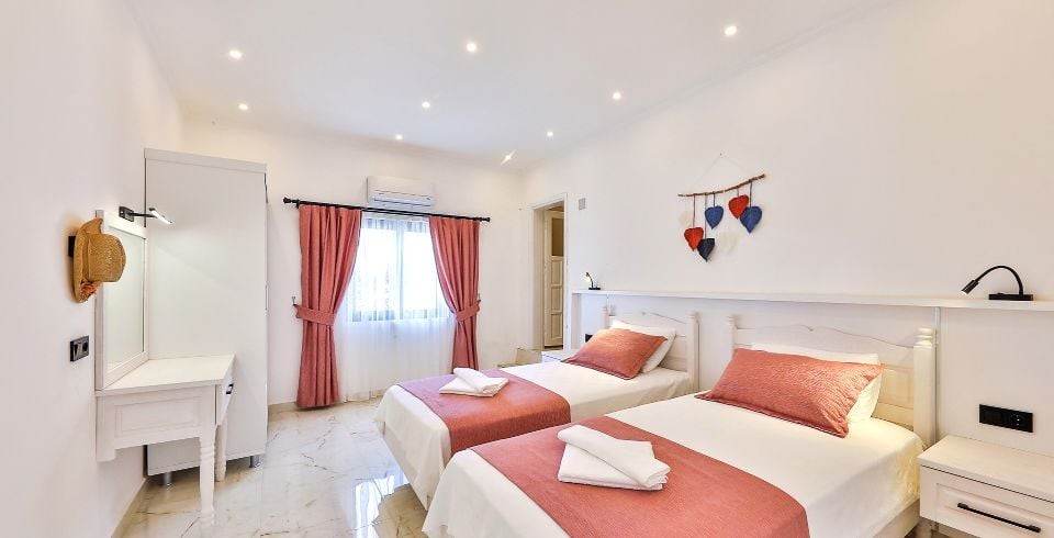 2. Yatak Odası : 2 adet tek kişilik yatak, elbise dolabı, makyaj masası, komodin ve banyo ve lavabo bulunmaktadır.