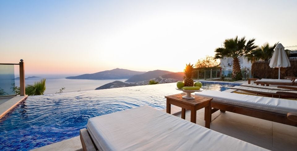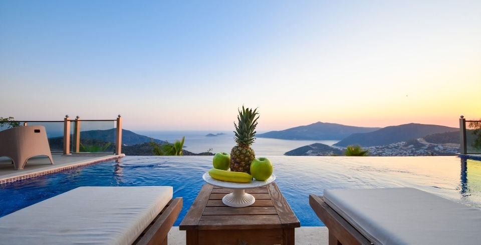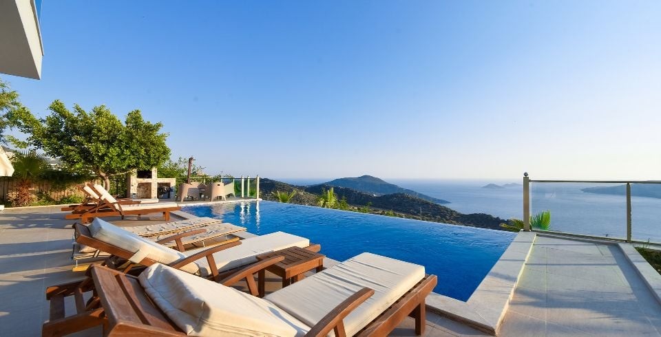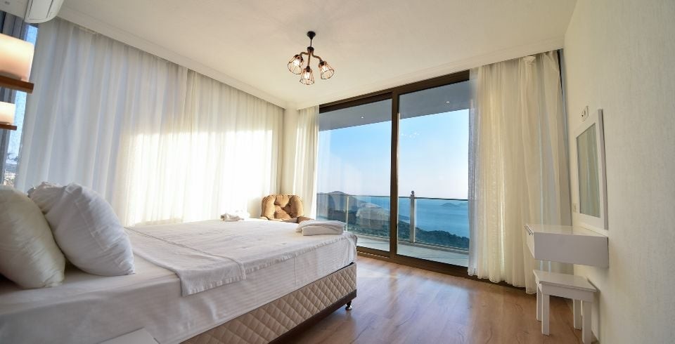 Villa Sunrise Kalkan Kördere mevkiisinde bulunan 3 yatak odalı 6 kişilik konaklama kapasitesine sahip olup,  geniş aileler ve arkadaş grupları için tasarlanmış bir villadır. Masmavi deniz manzarasına karşı akıllarda kalacak bir tatil geçirmek istiyorsanız bu villamız tam size göre.