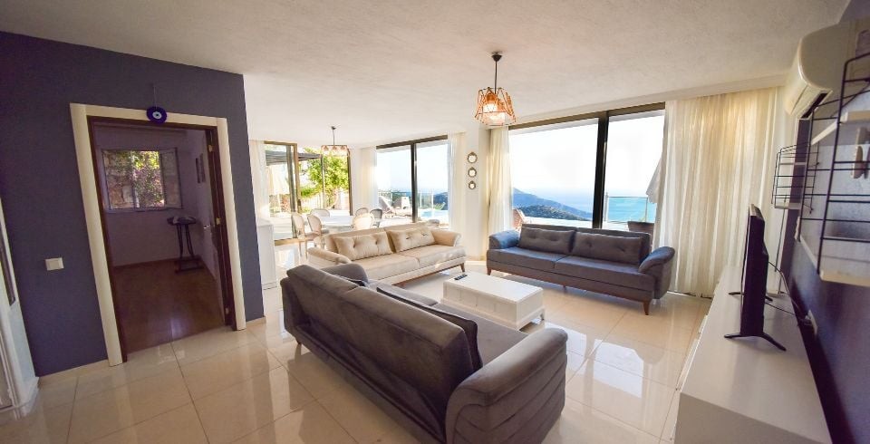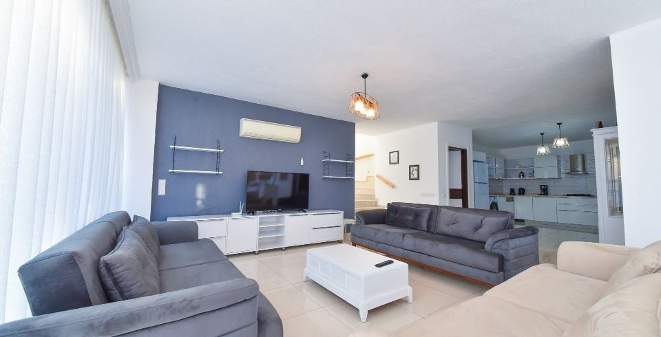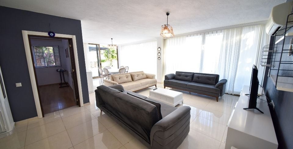 Salon : Villa salonunda oturma grubu, klima, TV, internet, uydu alıcı, yemek masası, sehpa bulunmaktadır.