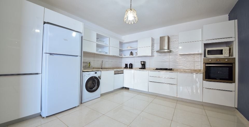 Mutfak : Villamızın mutfağında buzdolabı, bulaşık makinası, çamaşır makinası, fırın, 4 lü ocak, ketıl, mikrodalga fırın , yemek takımı bulunmaktadır.
