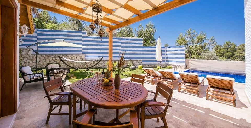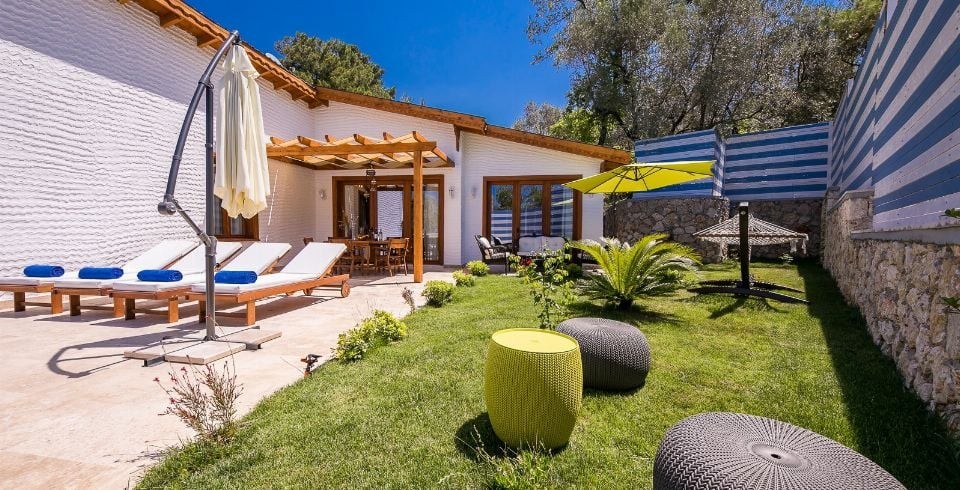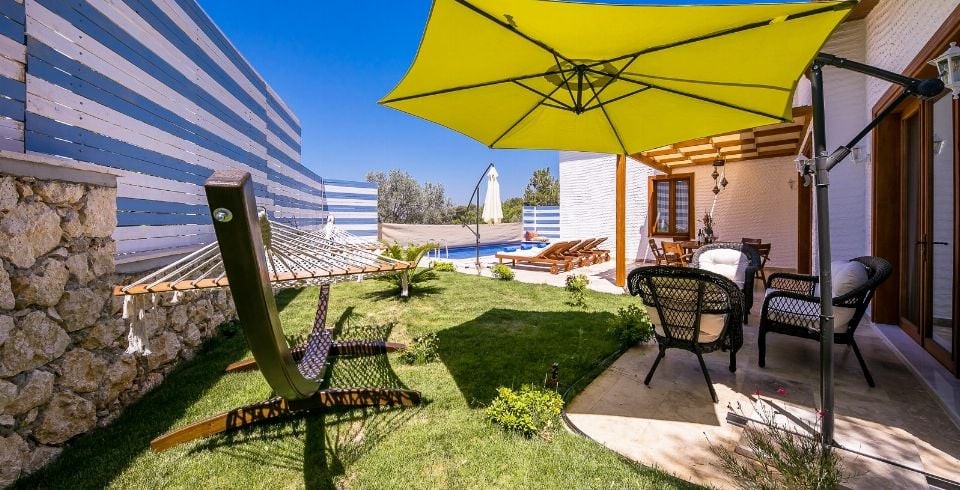 Havuz terası ve bahçe, dış görünüşe kapalı olacak şekilde tasarlanmıştır, bu sayede özellikle muhafazakâr misafirler için ideal bir tatil alanı sunar. Villanın konumu sayesinde plajlara, restoranlara ve marketlere kolay ulaşım imkânı vardır.