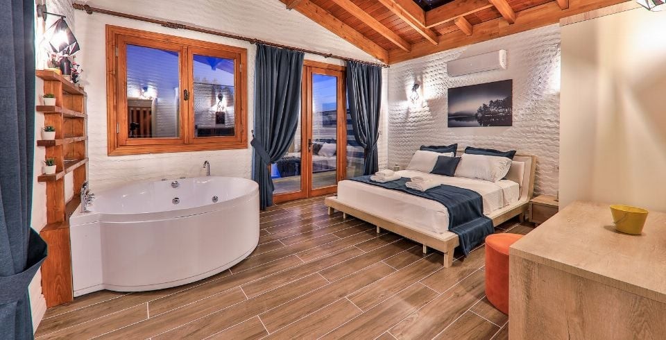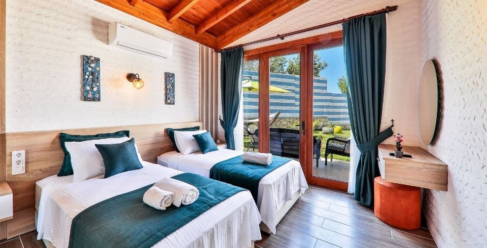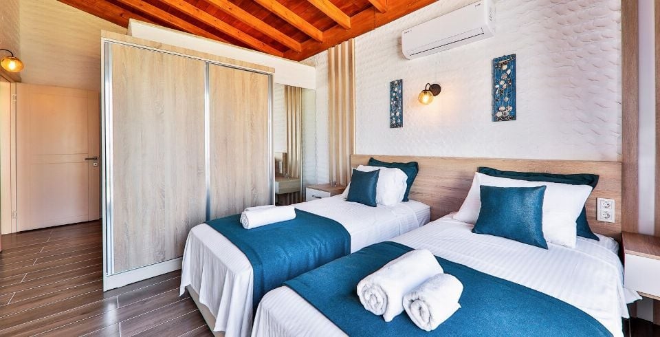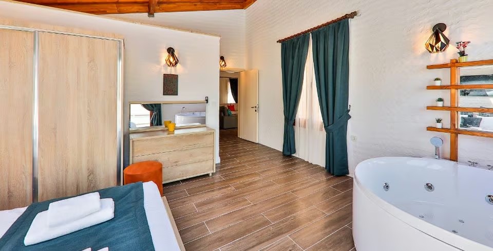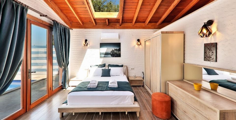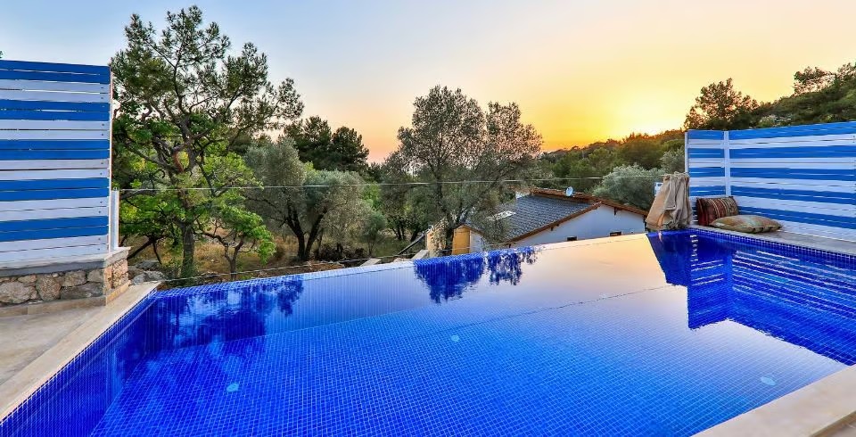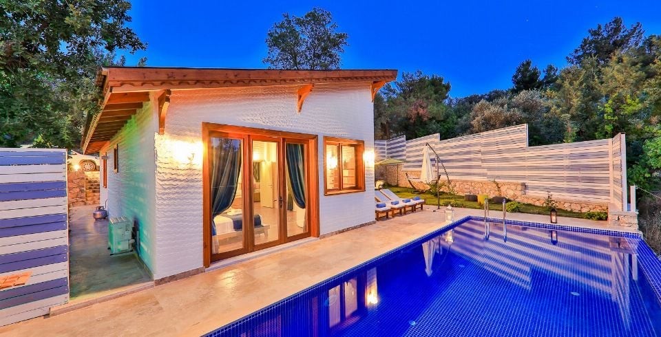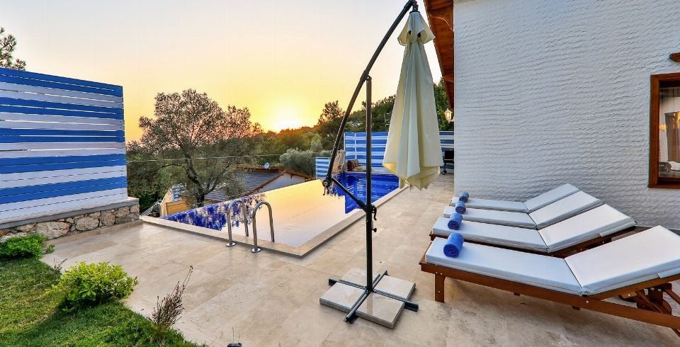 Villa Sunset 1, Kalkan’ın İslamlar mahallesinde yemyeşil doğanın tam kalbinde, şehir gürültüsünden uzak, korunaklı bir konumda yer alan lüks bir villadır. İki yatak odası ve iki banyosu ile dört kişilik konaklama kapasitesi sunar. Birinci odada büyük çift kişilik yatak ve özel jakuzi ile donatılmış en-suite banyo, ikinci odada ise iki tek kişilik yatak bulunmaktadır. Tüm odalarda klima standarttır.