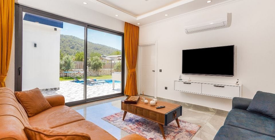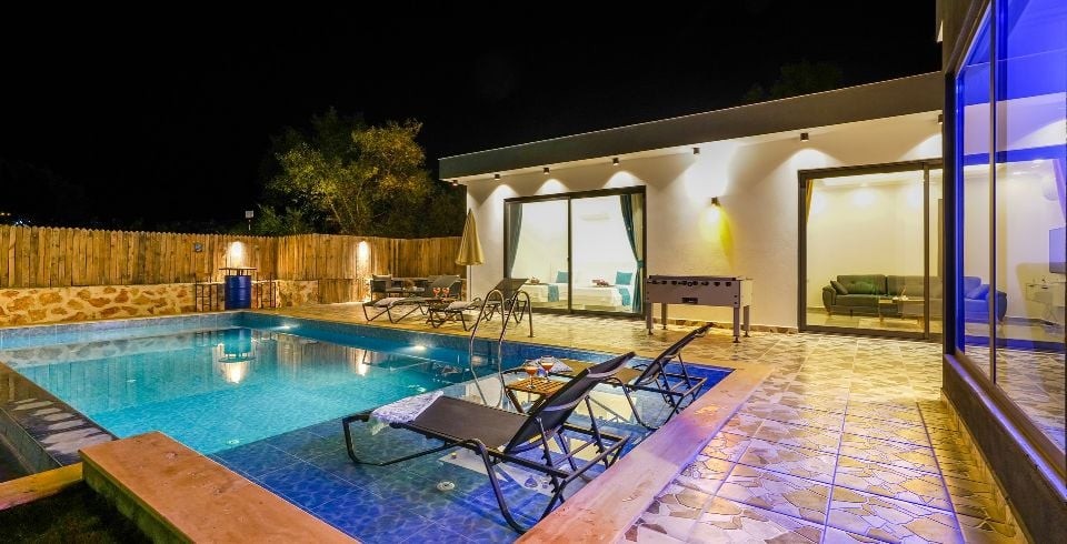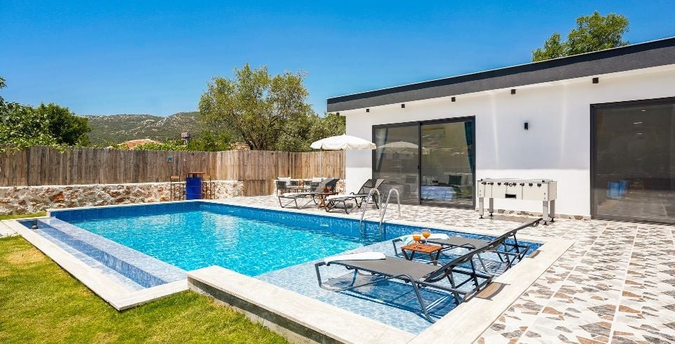 Villamız Kalkan Sarıbelen Bölgesi’nde bulunmaktadır. Doğa içerisinde bu lüks muhafazakar villa balayı çiftlerimiz için de oldukça uygundur. 2 yatak odalı 4 kişilik kapasiteye sahiptir. Konforunuz için özenle dizayn edilmiş olup lüks bir tatil için ihtiyacınız olan her detayı barındırmaktadır. Muhteşem bir doğa manzarasına sahip olup , 2 yatak odası ve salonu da havuz terasına çıkış yapılmaktadır. Villa superisinde jakuzi bulunmaktadır. Bu villamız eşinizle veya arkadaşınızla güzel bir tatil seçeneği sunmaktadır.