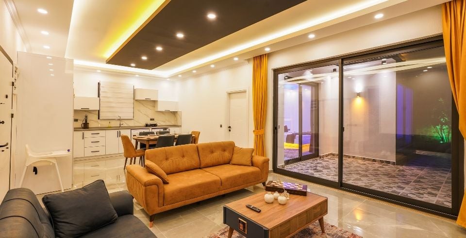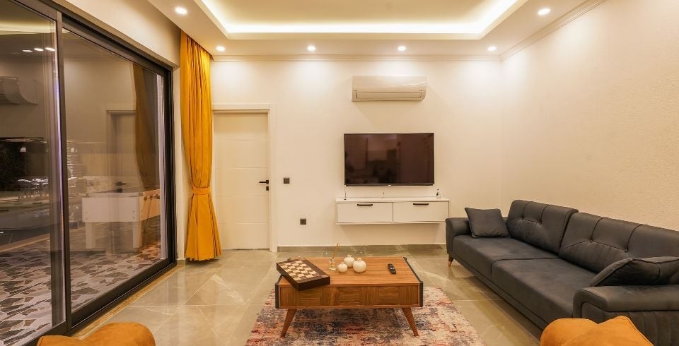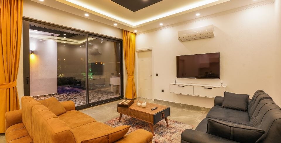 Salon : Salonda klima uydu alıcı, TV, oturma grubu, lavabo yer almaktadır. Salon havuz katındadır. En üst katta dinlenmek ve güneşlenmek için çok geniş bir seyir terası daha vardır. Bu alanda da oturma gurubu ,masa ve sandalye bulunur.