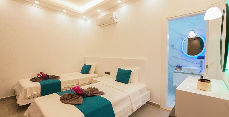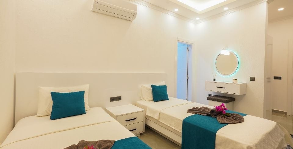 2. Yatak Odası : 2 adet tek kişilik yatak, klima, gardırop, komodin, ve banyo-WC yer almaktadır.