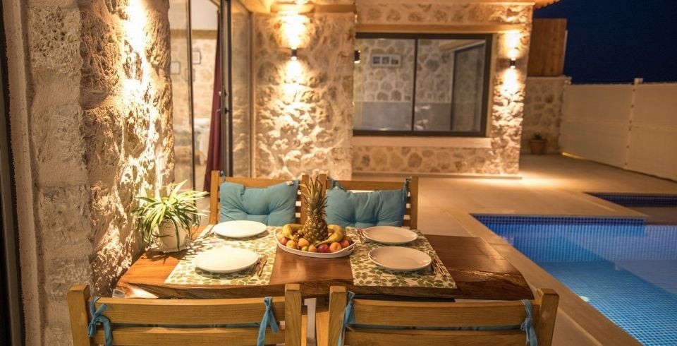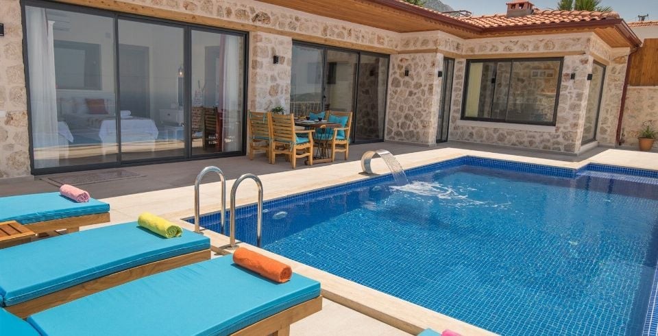 Villamız Kalkan Kördere mevkiinde konumlanmıştır. 2 yatak odalı balayı villası olan villa Sur harika deniz manzarası sahiptir. Kiralık yazlık villamız Kalkanın eşsiz manzarasına sahip olup özel yüzme havuzu ile birlikte muhafazakar olup kesinlikle dışardan gözükmemektedir. Villa Sur yaz kış içerde ısıtmalı havuzu olup jakuzili olarak da kullanılmaktadır. Ayrıca çocuk havuzu da bulunmaktadır. Villamızın Tüm eşyaları yeni olup harika konforlu bir şekilde dizayn edilmiştir. Eşsiz bir tatil için sizleri Villa Sura bekliyoruz..