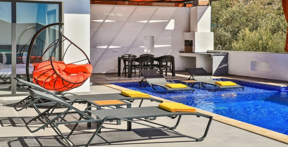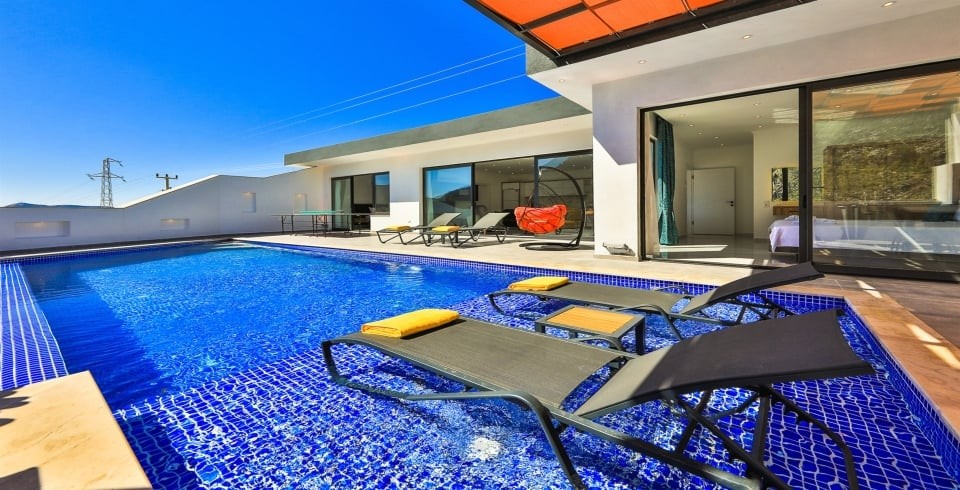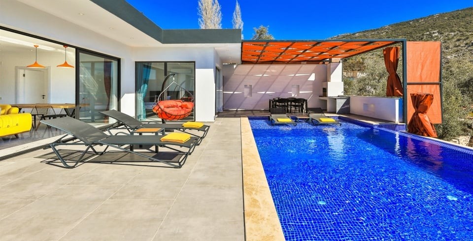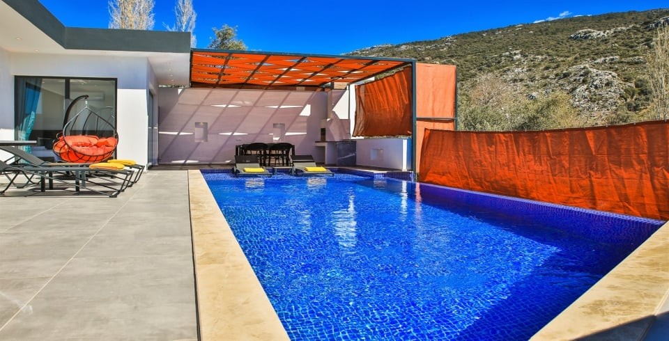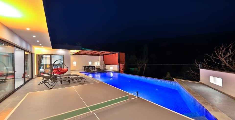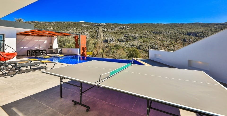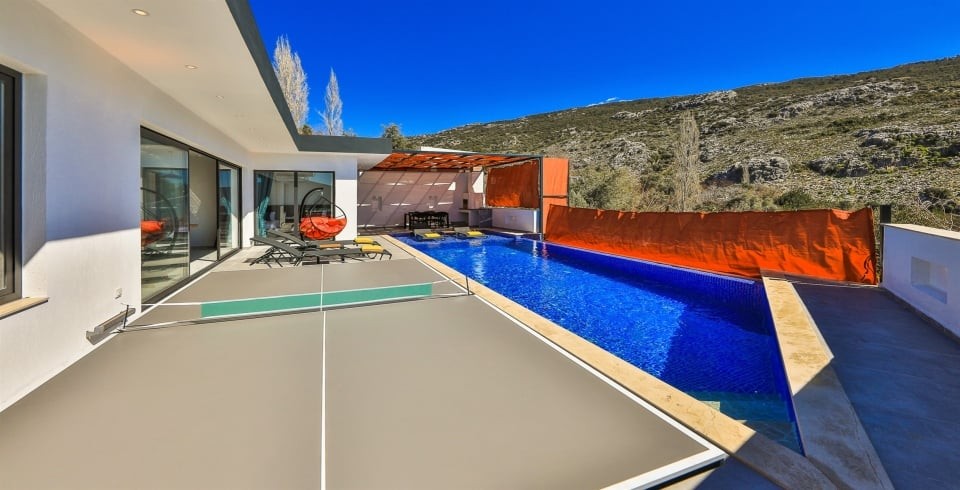 Havuz : Villamızın havuz terasında özel yüzme havuzu, şezlong, güneş şemsiyesi, masa tenisi, barbekü, oturma grubu mevcuttur. Havuz terası korunaklı olup dışarıdan gözükmemektedir.