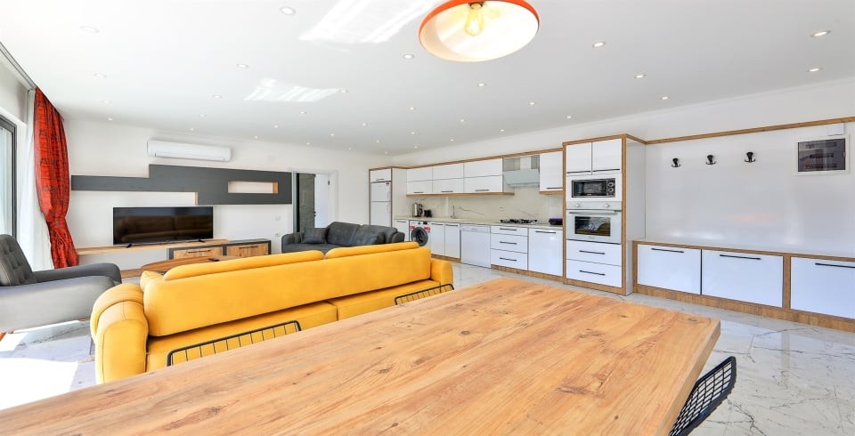 Salon : Salon içerisinde oturma grubu, TV, klima, sehpa bulunmaktadır. Havuz terasına çıkış yapılabilmektedir.