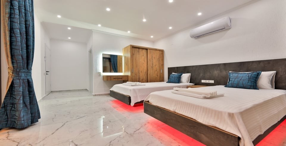 2. Yatak Odası : 2 adet tek kişilik yatak, klima, komodin, elbise dolabı, makyaj masası, balkon, banyo ve tuvalet bulunmaktadır.