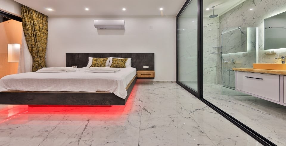 1. Yatak Odası : 1 adet çift kişilik yatak, klima, komodin, elbise dolabı, makyaj masası, jakuzi, balkon, banyo ve tuvalet bulunmaktadır.