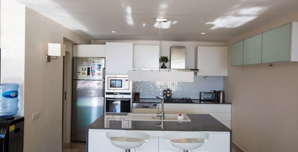 Mutfak : Modern dizayn edilmiş Amerikan mutfak, buzdolabı, bulaşık makinası, yemek masası, çamaşır makinası, klima, 4'lü ocak, mikro dalga fırın, fırın, ütü, ütü masası, ekmek kızartma, kettle, mutfak araç ve gereçleri bulunmaktadır.