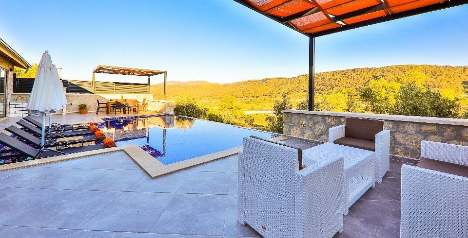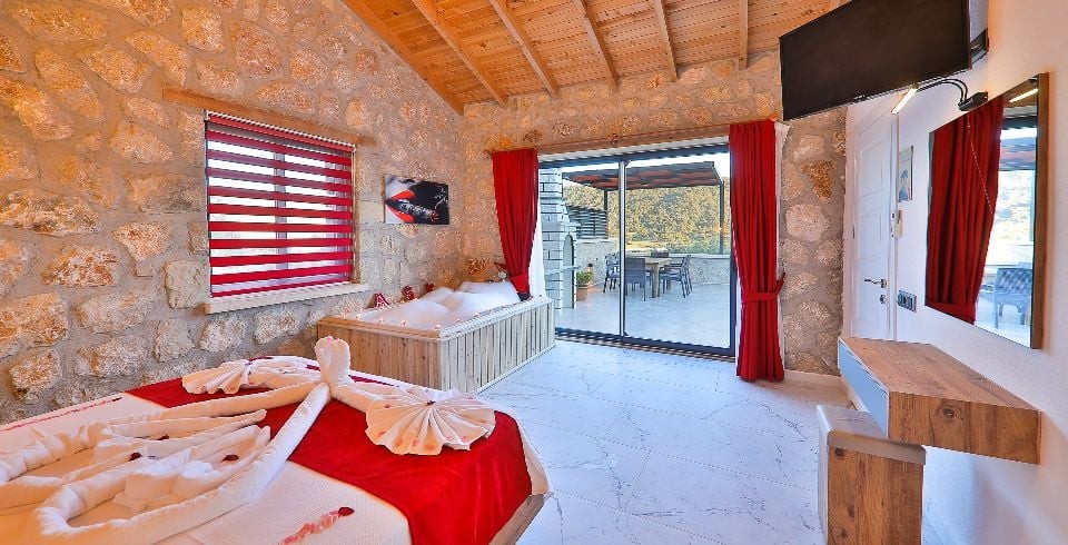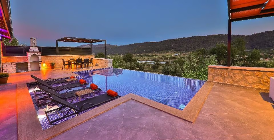 Kalkan Sarıbelen mahallesinde bulunan 2 Yatak odalı 4 kişilik jakuzili olan villamız yeni yapılmış olup muhteşem doğa manzarasına sahiptir. Villamız 2021 yılında yapılmış olup lüks konsepte ki villalarımız içerisinde bulunmaktadır. Villamızın denize ve merkeze uzaklığı 15-20 dk. araç mesafesinde bulunmaktadır. Villamız korunaklı ve muhafazakar ailelere ve balayı çiftleri için son derece ideal bir seçenektir.