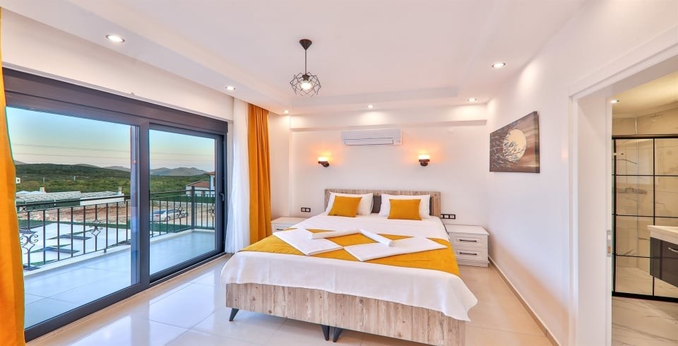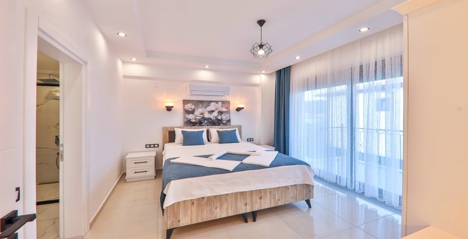 1. Yatak Odası : Çift kişilik konfor yatak, jakuzi, klima, gardırop, komodin, ve banyo-WC yer almaktadır.