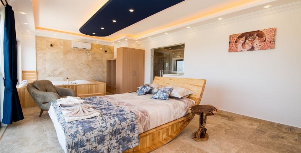 1. Yatak Odası : Çift kişilik yatak, klima, banyo, elbise dolabı, makyaj masası, sauna, jakuzi, komodin, saç kurutma makinası bulunmaktadır.