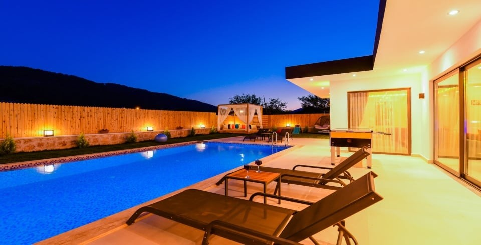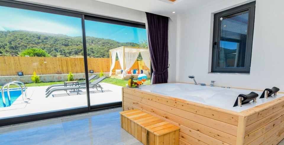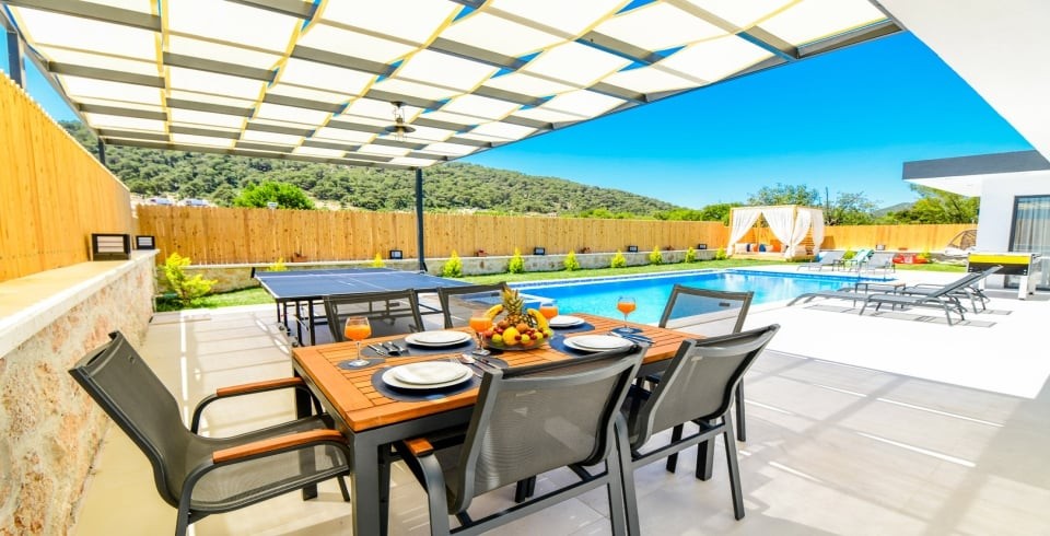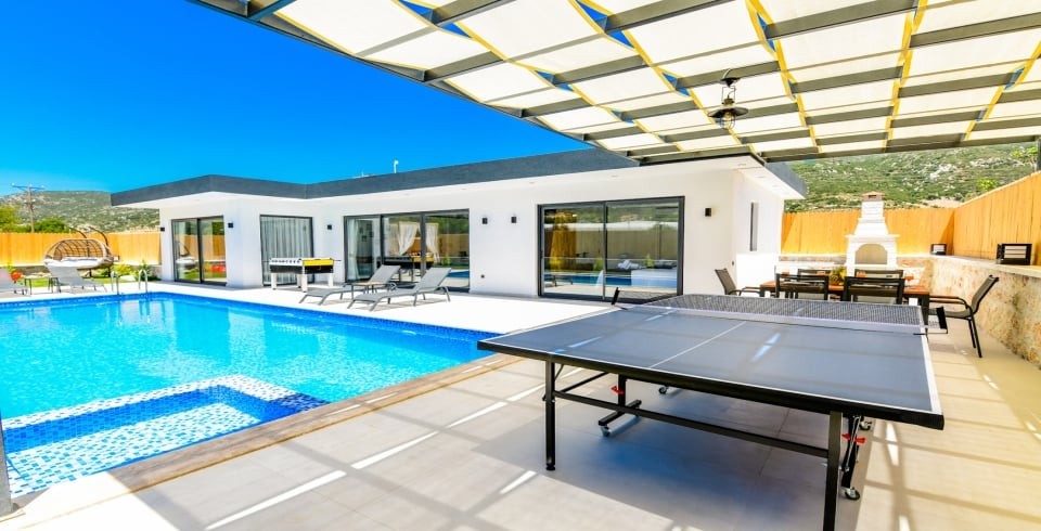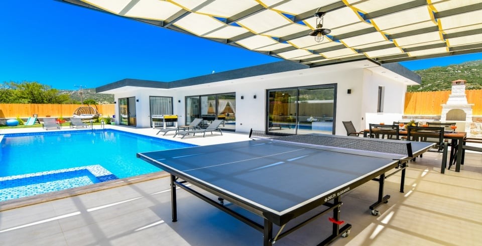 Villa Terasa'nın öne çıkan özellikleri arasında özel jakuzi ve keyifli vakit geçirmeniz için özel olarak tasarlanmış masa tenisi alanı bulunmaktadır. Villanın geniş terasında, muhteşem doğa manzarası eşliğinde huzurlu anların tadını çıkarabilirsiniz. Modern tasarımı ve şık dekorasyonuyla Villa Terasa, konforunuz için özenle düzenlenmiştir. Her ayrıntının düşünüldüğü bu villa, muhafazakar tatil severler için ideal bir seçenek sunmaktadır. Kalkan'ın eşsiz güzellikteki doğası içinde yer alan Villa Terasa, şehir hayatının gürültüsünden uzaklaşmak isteyenler için mükemmel bir kaçış noktasıdır. Tatilinizi unutulmaz kılmak için buradayız. Siz de Villa Terasa rüya gibi bir tatilin kapılarını aralayın.