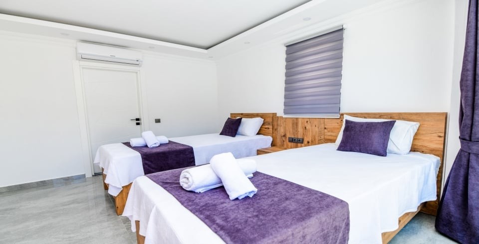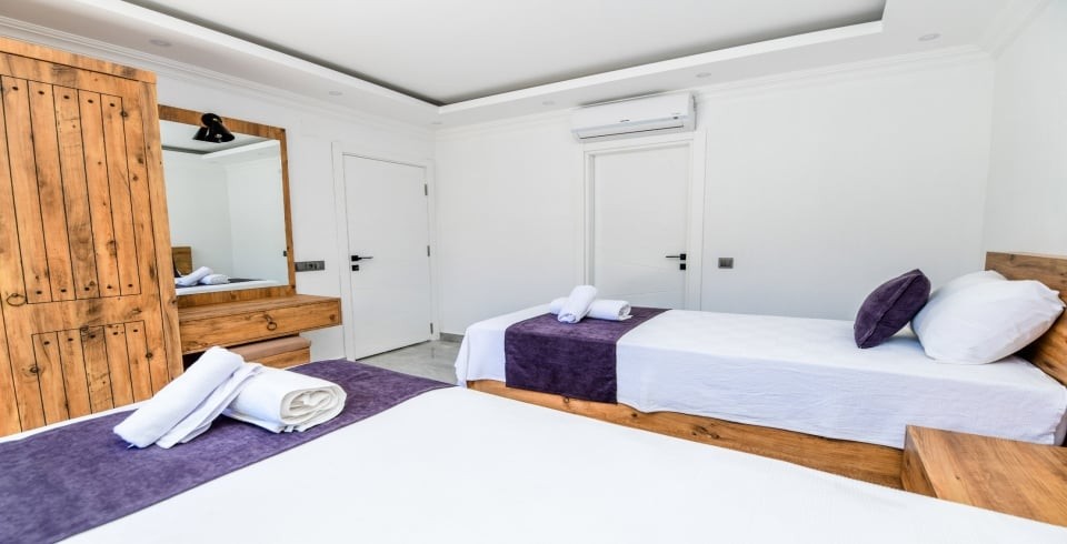 2. Yatak Odası : 2 adet tek kişilik yatak, klima, elbise dolabı, komodin, makyaj masası, banyo ve tuvalet bulunmaktadır.