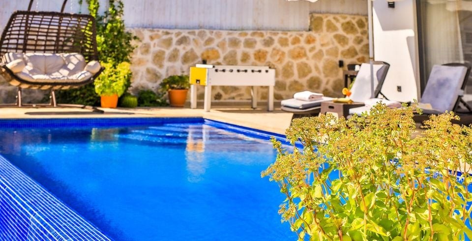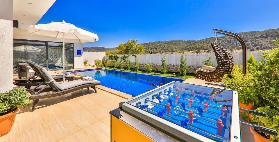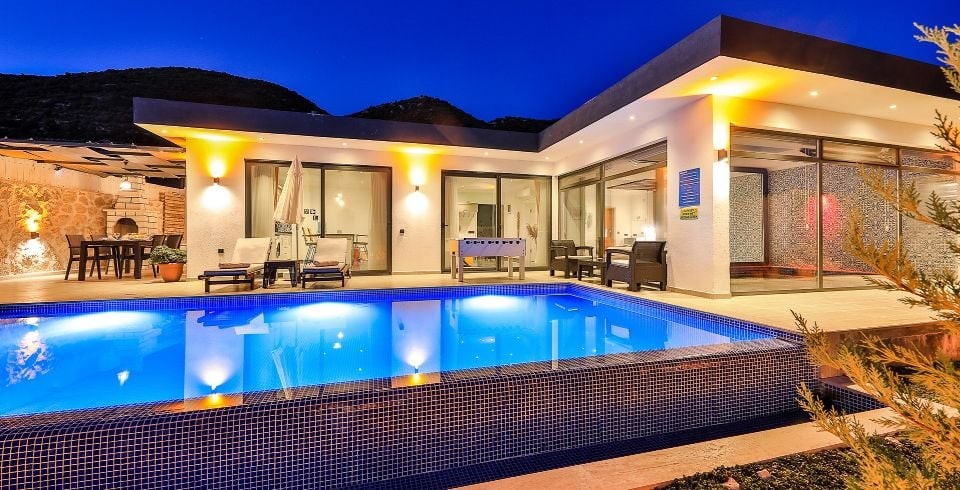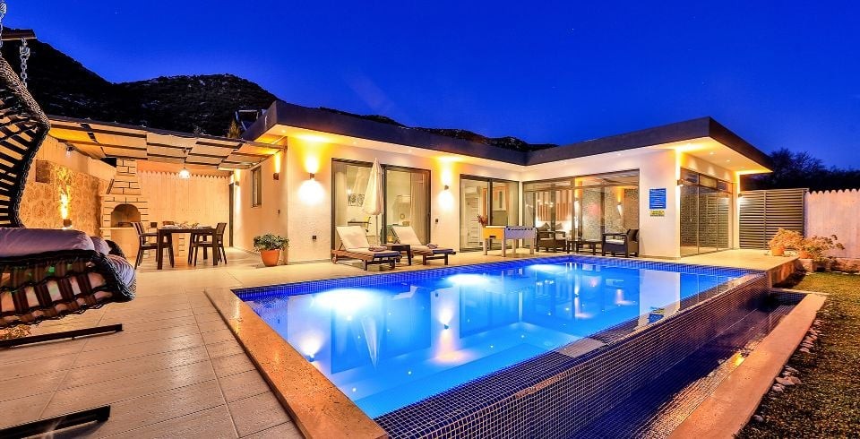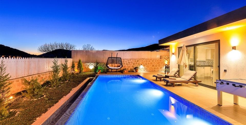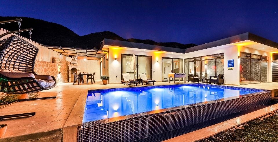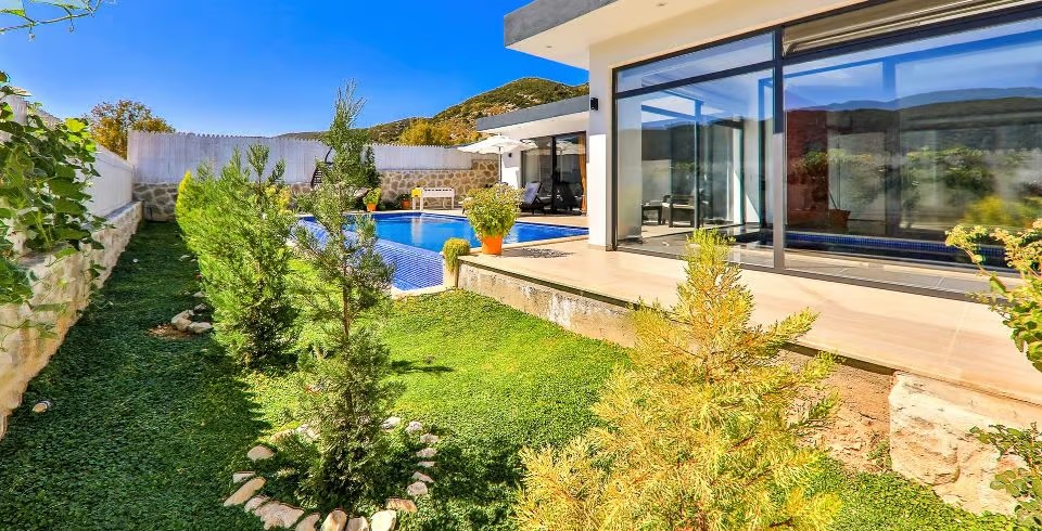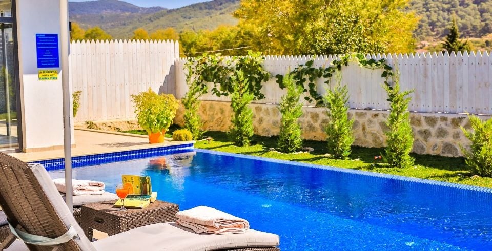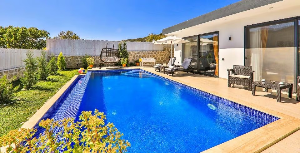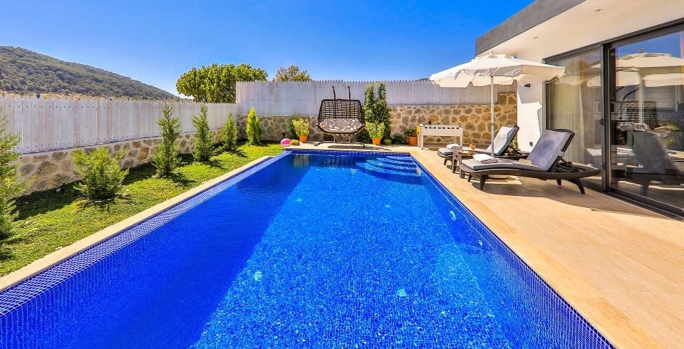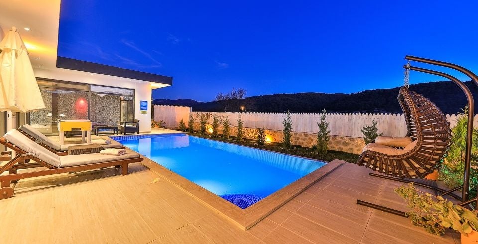Kalkan’ın sakin ve doğayla iç içe Sarıbelen bölgesinde yer alan Villa Therapy, 2 kişilik kapasitesiyle özellikle balayı çiftleri ve muhafazakâr misafirler için ideal bir tatil seçeneğidir. Tamamen korunaklı bahçe ve havuz alanına sahip olan villa, dışarıdan görünmeyen özel tasarımı sayesinde misafirlerine huzurlu, konforlu ve özgür bir tatil deneyimi sunar.
