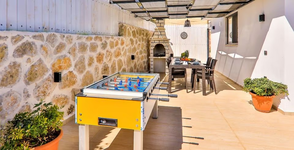 Havuz ve Bahçe : Korunaklı özel yüzme havuzu, şezlong, şemsiye, oturma yeri, yemek masası ve mangal bulunmaktadır..