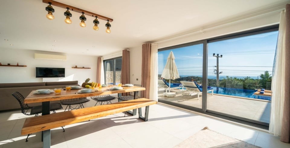 Kalkan’ın sessiz ve huzurlu Kördere bölgesinde konumlanan Villa Therapy 620, hem yaz hem de kış aylarında konforlu bir tatil imkânı sunan modern bir kiralık villadır. 3 yatak odası ve 6 kişilik konaklama kapasitesiyle aileler ve karışık arkadaş grupları için ideal olan villamız, korunaklı özel yüzme havuzu, kapalı ısıtmalı havuzu ve muhteşem deniz manzarası ile ön plana çıkar. Doğayla iç içe, şehir merkezine yakın bir konumda yer alan villa, konuklarına hem huzuru hem de ulaşım kolaylığını bir arada sunar.