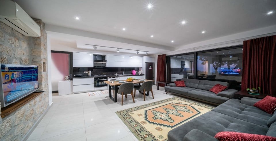 Kalkan şehir merkezi villadan yaklaşık 3 km uzaklıkta yer alır ve araçla 5–10 dakika içinde market, restoran ve plajlara ulaşmak mümkündür. Villa Therapy Aqua, modern mimariyi doğanın dinginliğiyle birleştiren yapısıyla, hem konforlu hem de huzur dolu bir tatil arayan misafirler için mükemmel bir seçenektir.