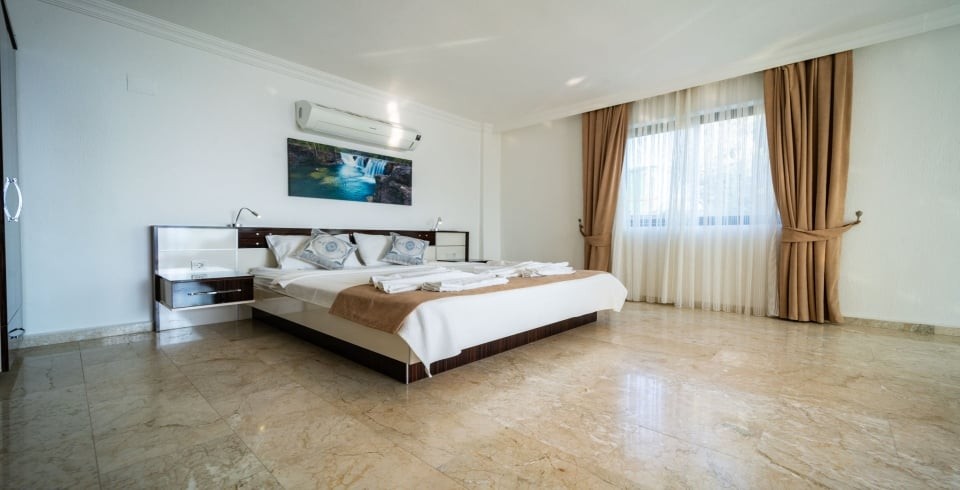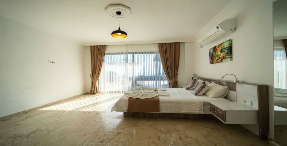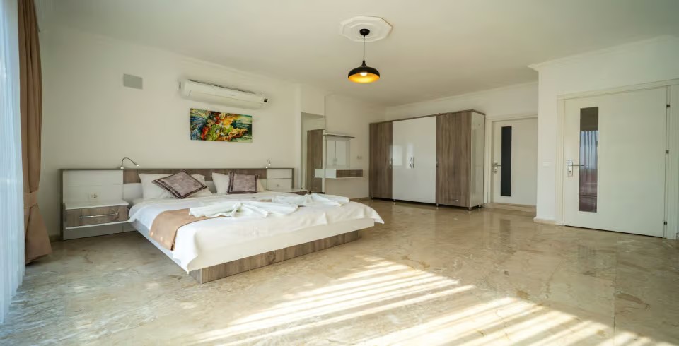 3. Yatak Odası : 1 adet çift kişilik yatak, klima, komodin, elbise dolabı, TV banyo ve tuvalet bulunmaktadır.