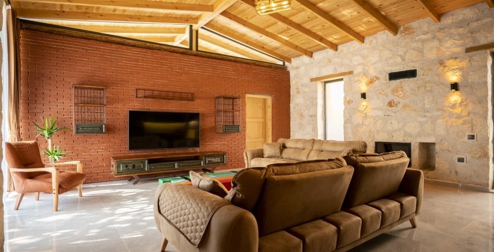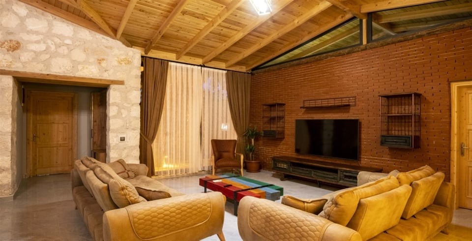 Salon : Villamızın iç dizaynı da son modaya uygun olarak modern bir şekilde tasarlanmıştır. Çeşitli dekoratif eşyalarla süslediğimiz salonumuz havuzlu bahçeye açılıyor. Villa salonunda oturma grubu, TV, internet, klima, sehpa bulunmaktadır.
