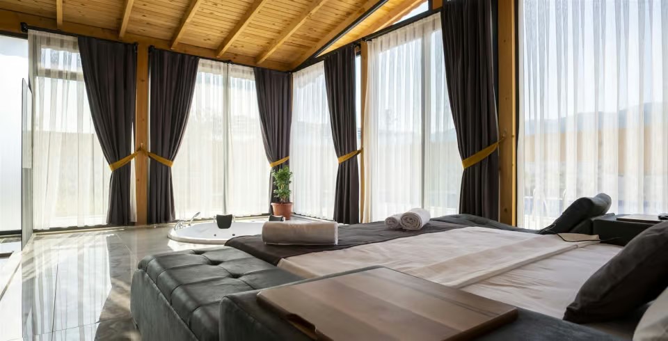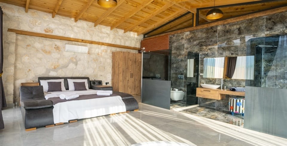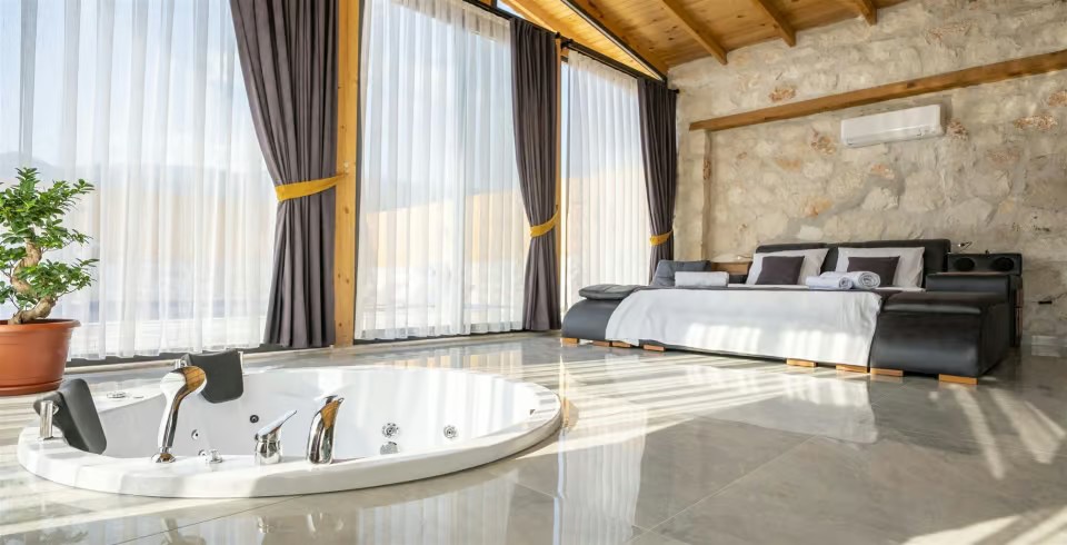 1. Yatak Odası : Çift kişilik yatak, klima, komodin, jakuzi, makyaj masası, elbise dolabı, banyo ve lavabo bulunmaktadır.