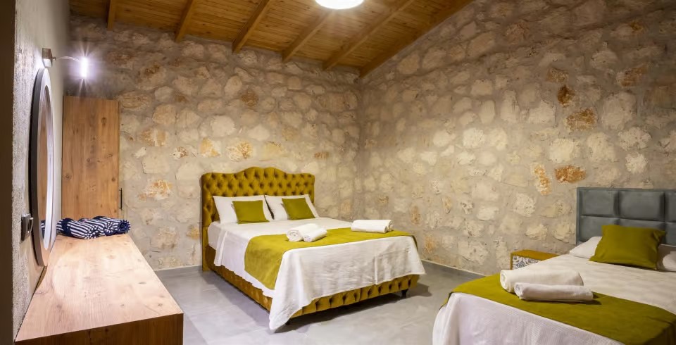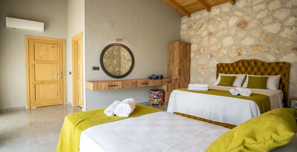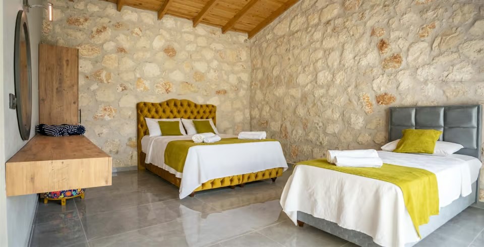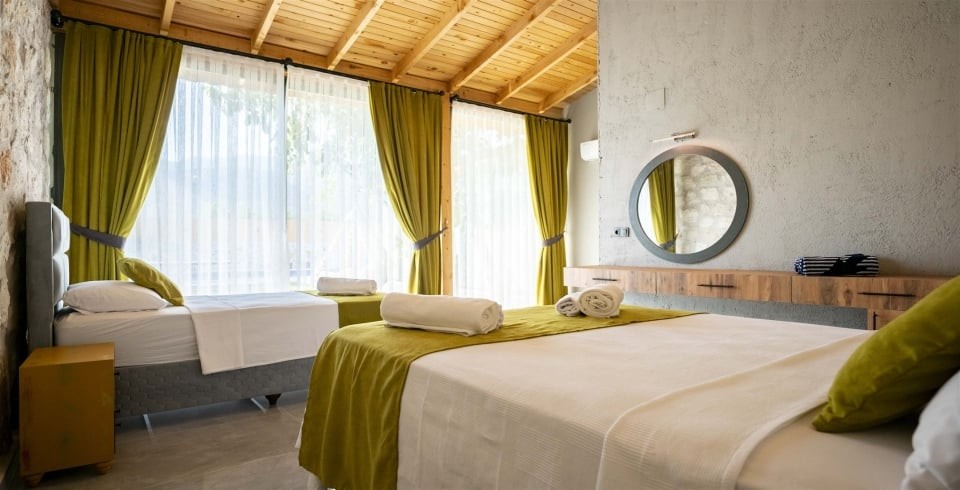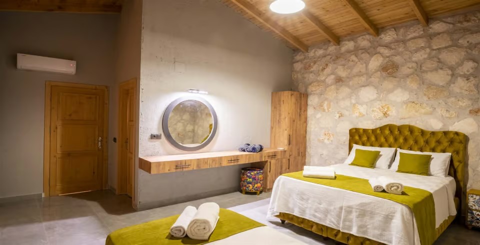 2. Yatak Odası : 1 adet tek kişilik yatak,1 adet çift kişilik yatak, komodin, klima, makyaj masası, elbise dolabı, banyo ve lavabo bulunmaktadır.
