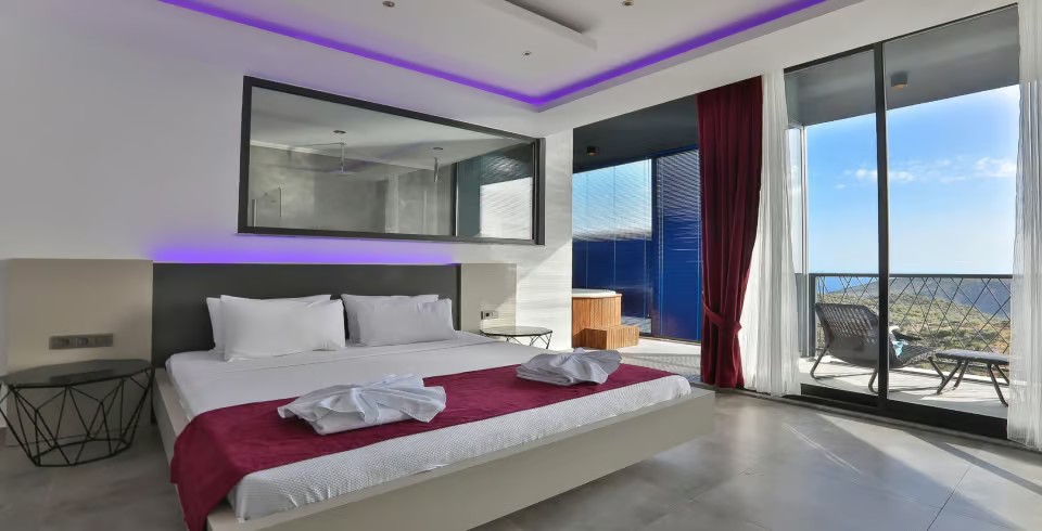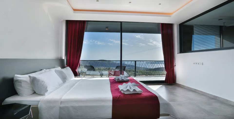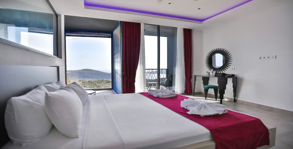 Villa Tria, Kalkan Ordu bölgesinde, Kalkan merkeze araçla yalnızca 6-7 dakikalık mesafede konumlanan bu modern villa, şıklık ve konforu bir arada sunmaktadır. Villamız, toplamda 3 yatak odasına ve 6 kişilik konaklama kapasitesine sahiptir. Odalardan biri çift kişilik yatak ve jakuzisiyle konuklarına lüks bir deneyim sunarken, diğer odalar da konforlu bir şekilde tasarlanmıştır. Panoramik deniz manzarasına sahip geniş bir oturma ve yemek alanına sahiptir.
