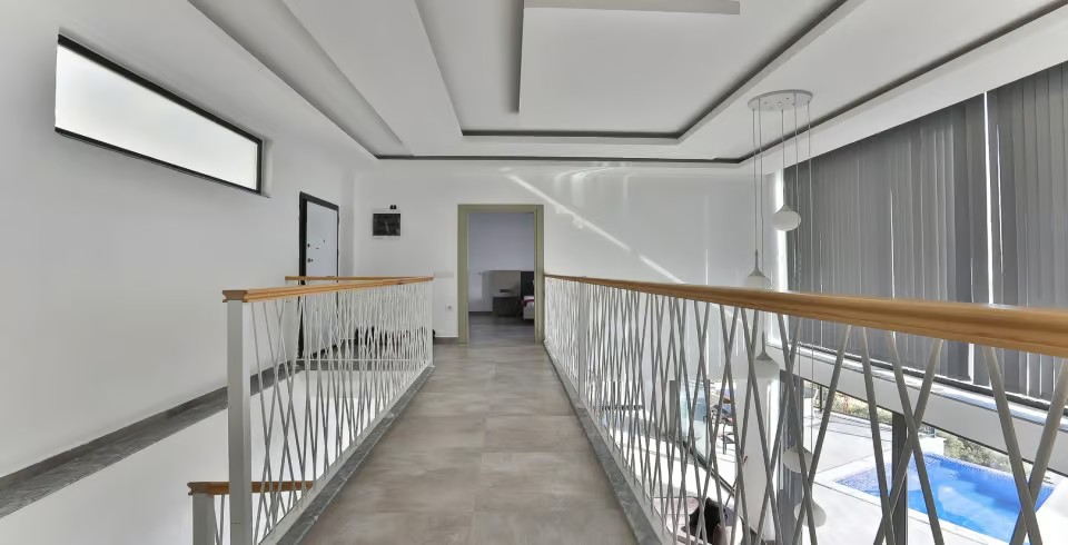 Salon : Salon içerisinde oturma grubu, TV, klima, sehpa bulunmaktadır. Havuz terasına çıkış yapılabilmektedir.
