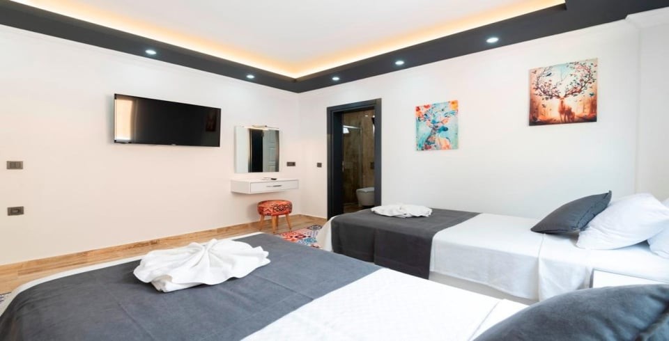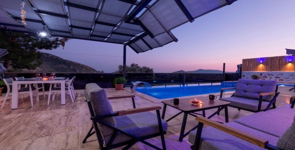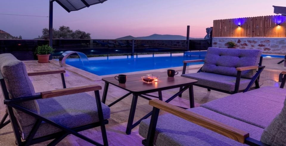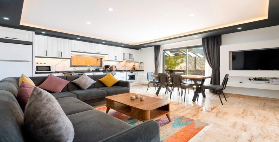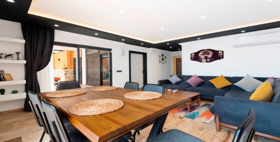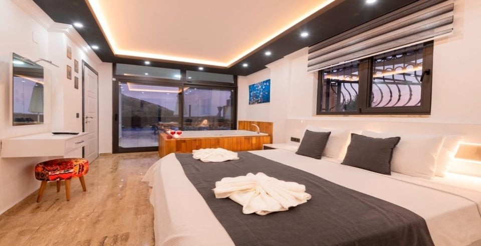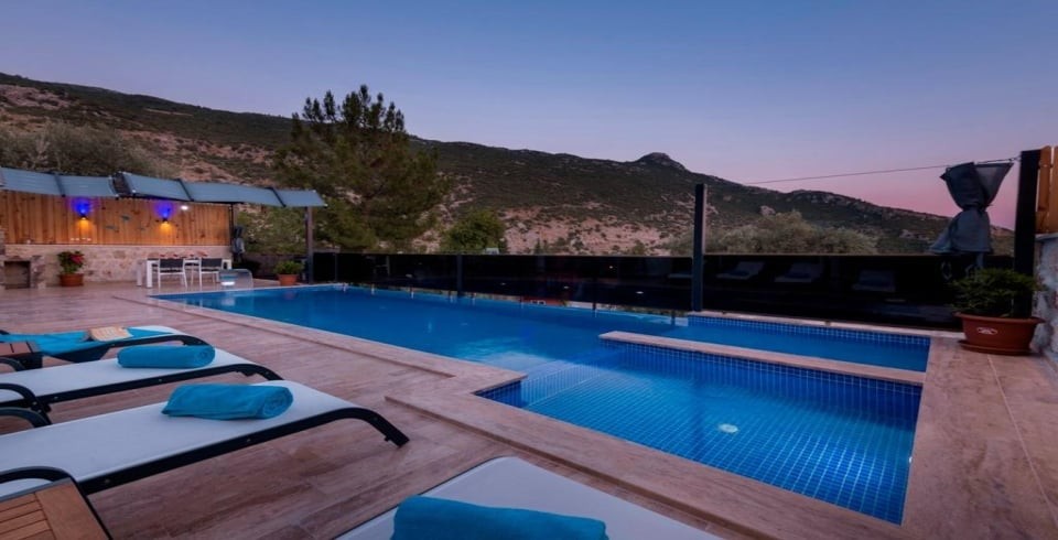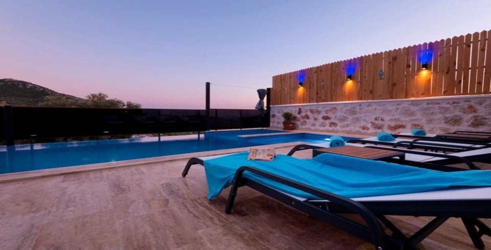 Villa Tuna Duo, Kalkan’ın İslamlar mevkiinde yer alan, 4 kişi kapasiteli, romantik bir villadır. 2 yatak odası ve 2 banyosuyla konforlu bir konaklama sunar; suit odasında jakuzili banyo yer alır. Villada özel havuz, sauna ve geniş havuz terası ile doğayla iç içe, huzurlu bir tatil deneyimi sizi bekliyor. Modern ve ferah bir mutfak ile tam donanımlı beyaz eşya (fırın, ocak, buzdolabı, mikrodalga) ve mutfak gereçleri konforlu kullanım sağlar. Oturma alanı, klima ve TV gibi imkanlarla donatılmıştır. Villa, üzüm bağları ve çam ormanları içerisinde, konumuyla dikkat çeker. Restoran, market ve kafe gibi günlük ihtiyaç noktalarına kısa mesafede yer alırken, plaja ulaşım da kolaydır. Doğa yürüyüşleri ve sessiz çevresi, tatilinize dinginlik katacaktır.