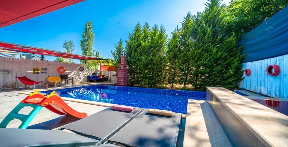 Havuz ve Bahçe: Özel bahçe içerisinde havuz, bahçe yemek masası, salıncak, barbekü, şezlong bulunmaktadır.
