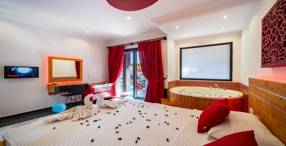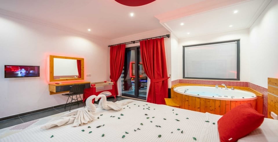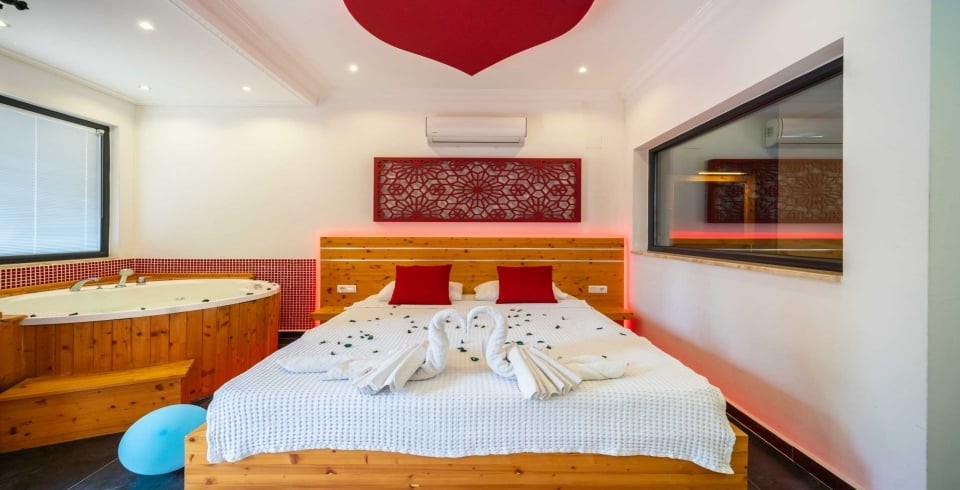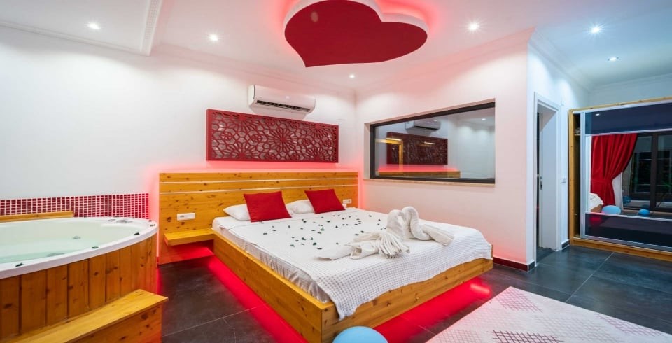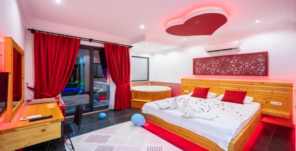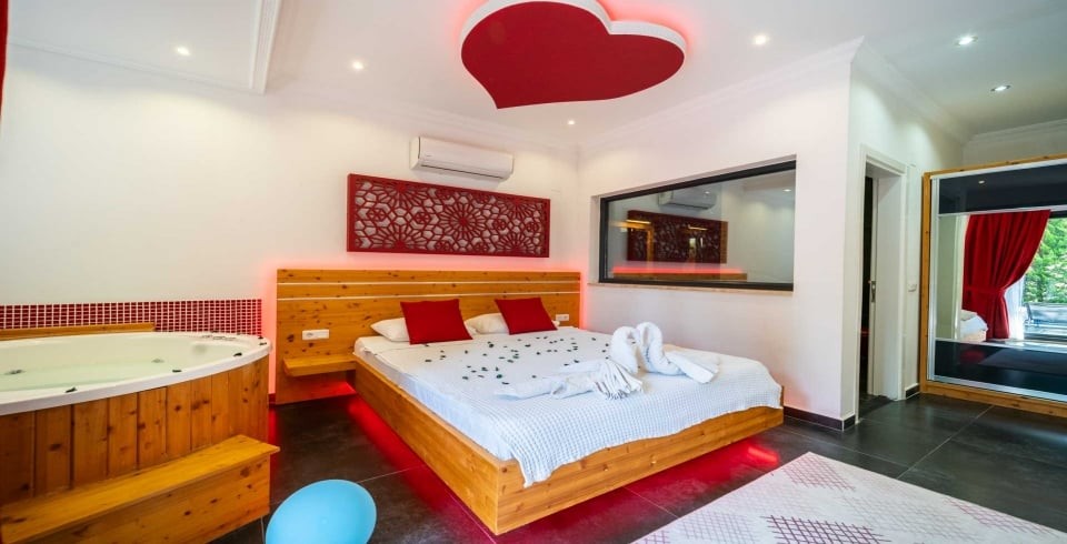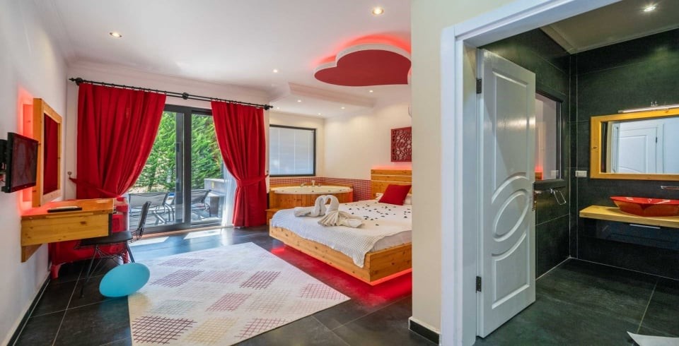 1 Yatak Odası: Suit yatak odası klimalıdır ve yatak odası içerisinde komodin, 1 adet çift kişilik yatak, banyo, makyaj masası, jakuzi, elbise dolabı ve WC yer almaktadır.