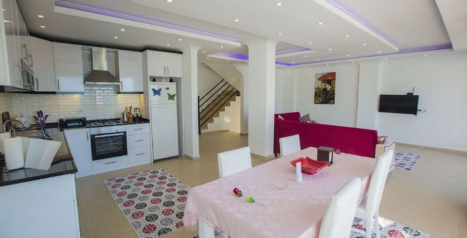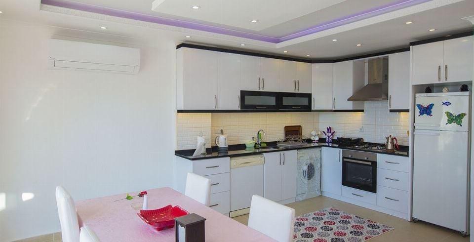 Mutfak : Şık tasarım ve kullanışlı Amerikan mutfak, kettle, mikro dalga fırın, 4'lü ankastre ocak, buzdolabı, çamaşır makinası, bulaşık makinası, yemek masası ve mutfak araç ve gereçleri bulunmaktadır.