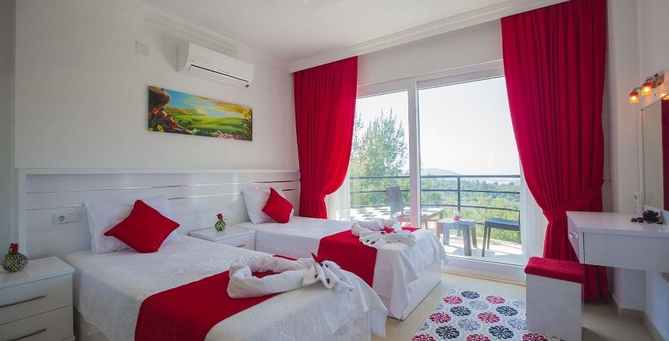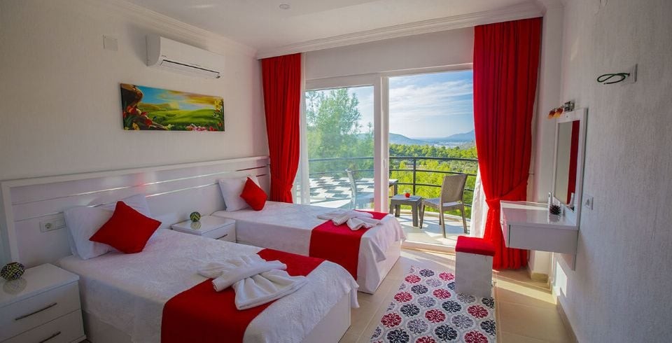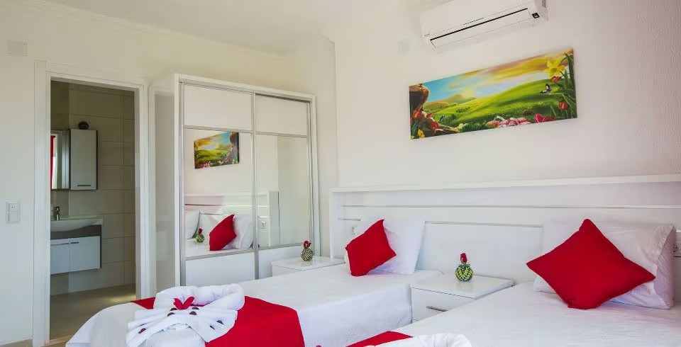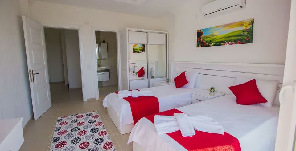 2. Yatak Odası : 2 adet tek kişilik yatak, klima, komodin, elbise dolabı, balkon, banyo ve lavabo bulunmaktadır.