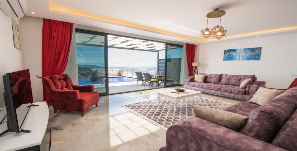 Salon :  Villa salonunda oturma grubu, TV, internet, sehpa, klima bulunmaktadır.