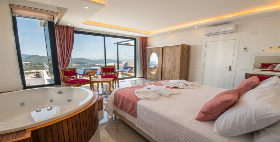 1. Yatak Odası : Çift kişilik yatak, komodin, jakuzi  makyaj masası, elbise dolabı, klima,  banyo ve lavabo tuvalet  bulunmaktadır.