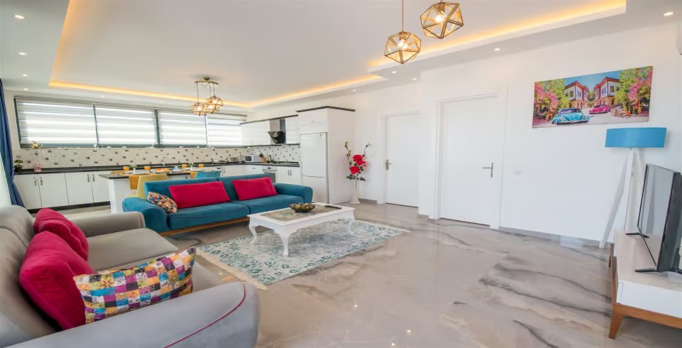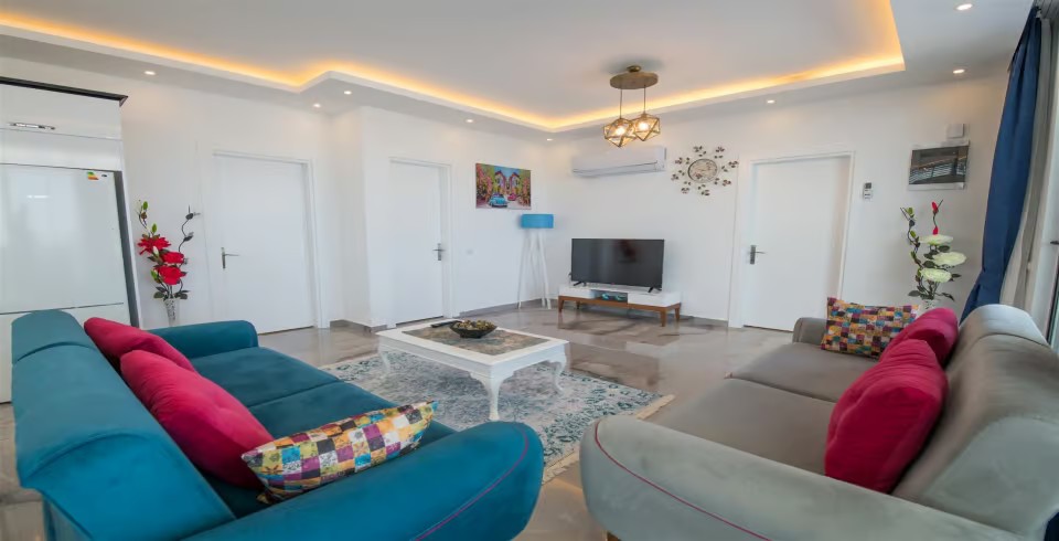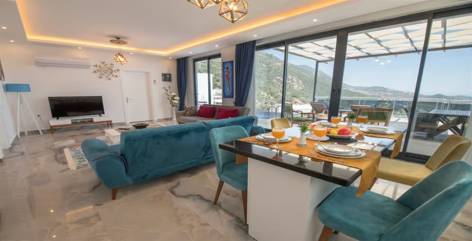 Salon :  Villa salonunda oturma grubu, TV, internet, sehpa, klima bulunmaktadır.