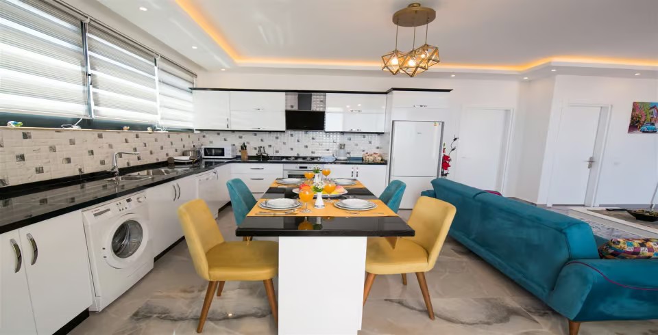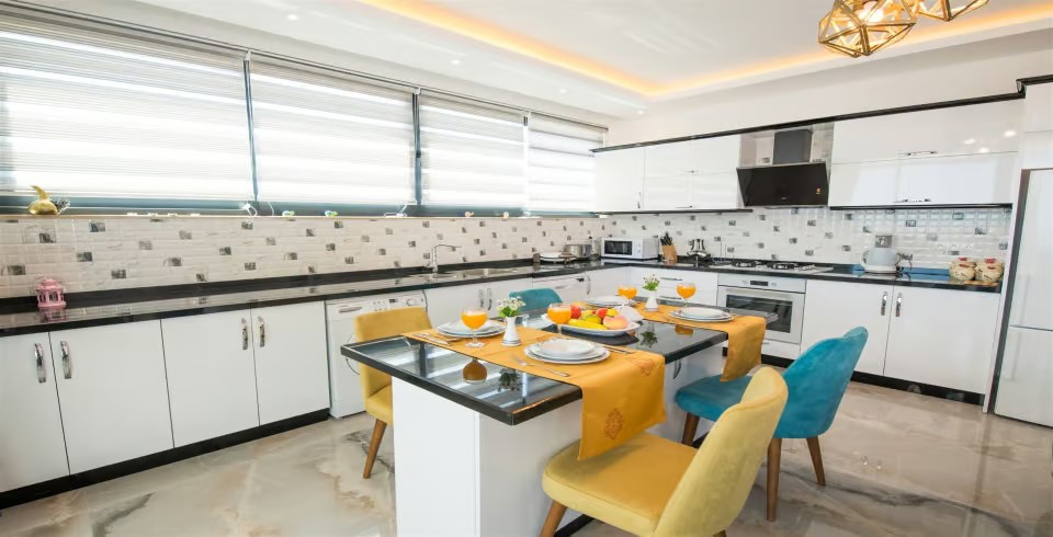 Mutfak : Ada yemek masası, buzdolabı, fırın, tost makinası, yemek takımları, tencere tava takımları, çatal bıçak takımları, bulaşık makinası bulunmaktadır.