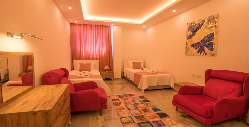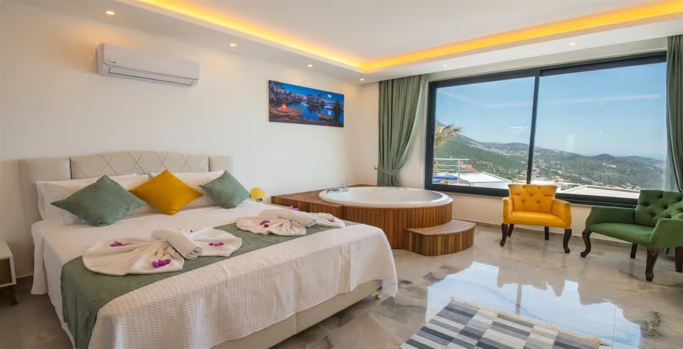 Kalkan Akbel bölgesinde yer alan villamız, 2 yatak odalı 4 kişilik kapasiteye sahip tatil villasıdır. Villamızın yatak odalarında toplamda 2 tane  tek kişilik 1 adet çift kişilik yatak bulunmaktadır. Villamız muhafazakar olup muhteşem deniz manzarasına sahip balayı çiftleri ve aileler için uygundur.