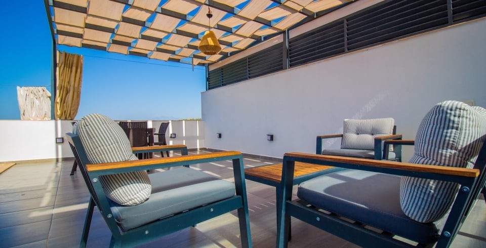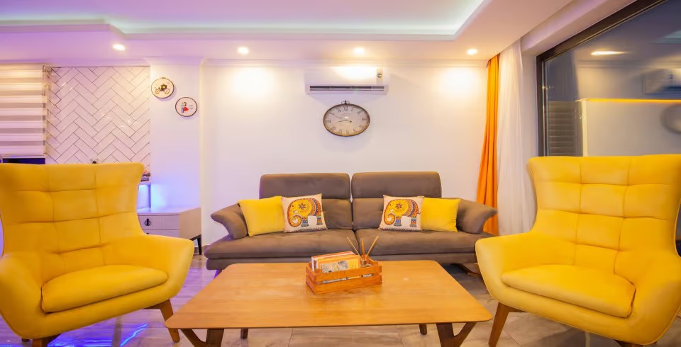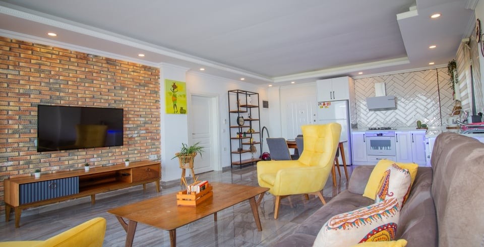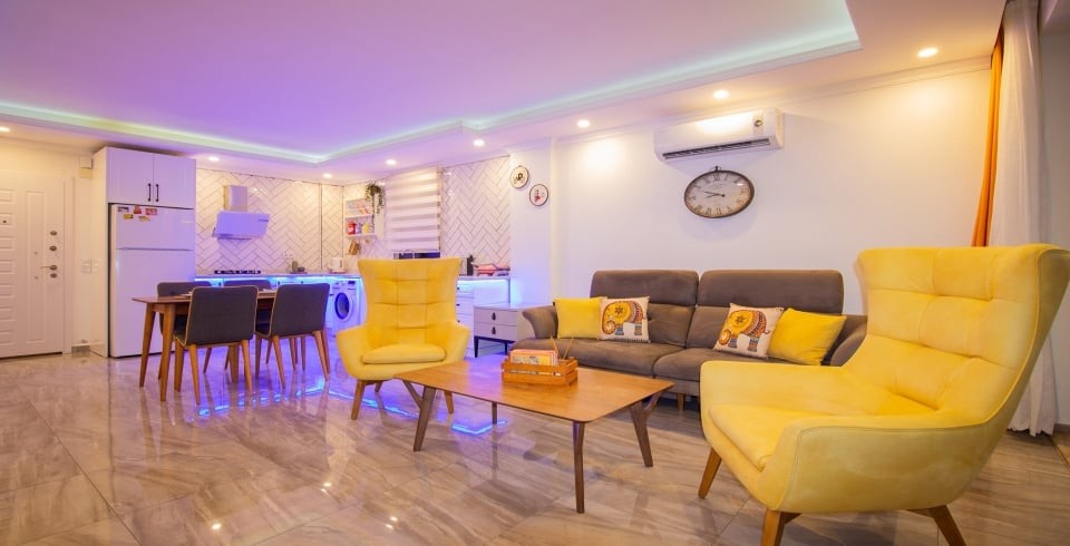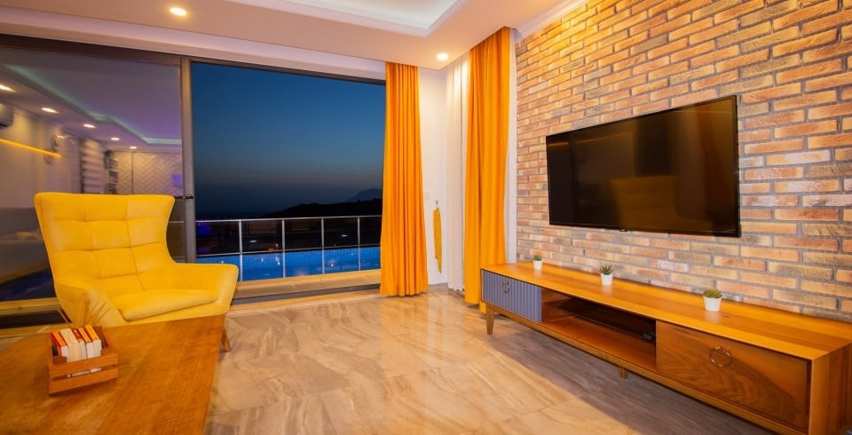 Salon : Villamızın iç dizaynı da son modaya uygun olarak modern bir şekilde tasarlanmıştır. Çeşitli dekoratif eşyalarla süslediğimiz salonumuz havuzlu bahçeye açılıyor. Villa salonunda oturma grubu, TV, internet, klima, sehpa bulunmaktadır.