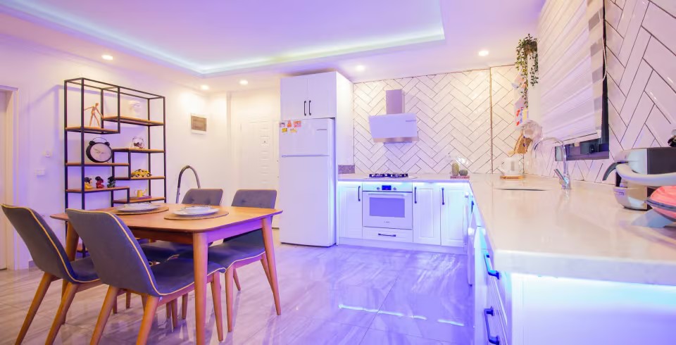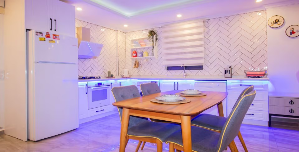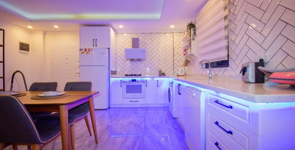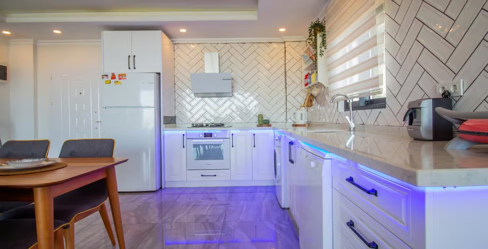 Mutfak : Modern Amerika mutfağımızda yemek masası, buzdolabı, fırın, 4’lü ocak, elektrikli su ısıtıcısı, çatal-bıçak takımı, tencere-tava takımı, bulaşık makinesi çamaşır makinesi, bulunmaktadır.