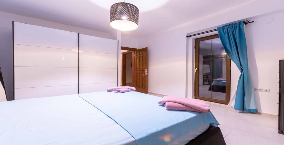 1. Yatak Odası : Çift kişilik konfor yatak, klima, komodin, ve ortak kullanım banyo-WC yer almaktadır.