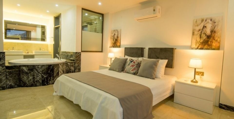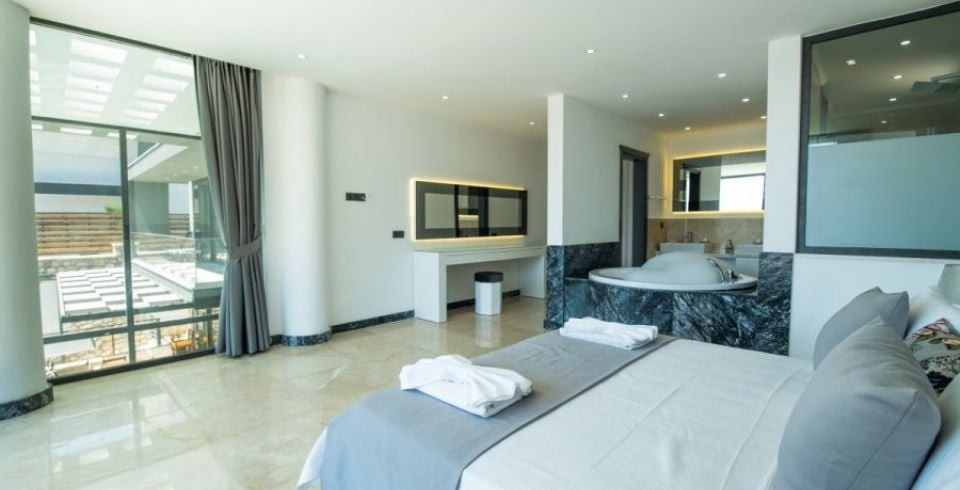 2. Yatak Odası : Süit oda çift kişilik yatak, klima, jakuzi, elbise dolabı, güvenlik kasası, komodin, makyaj masası, balkon, masa sandalye, banyo, tuvalet bulunmaktadır.