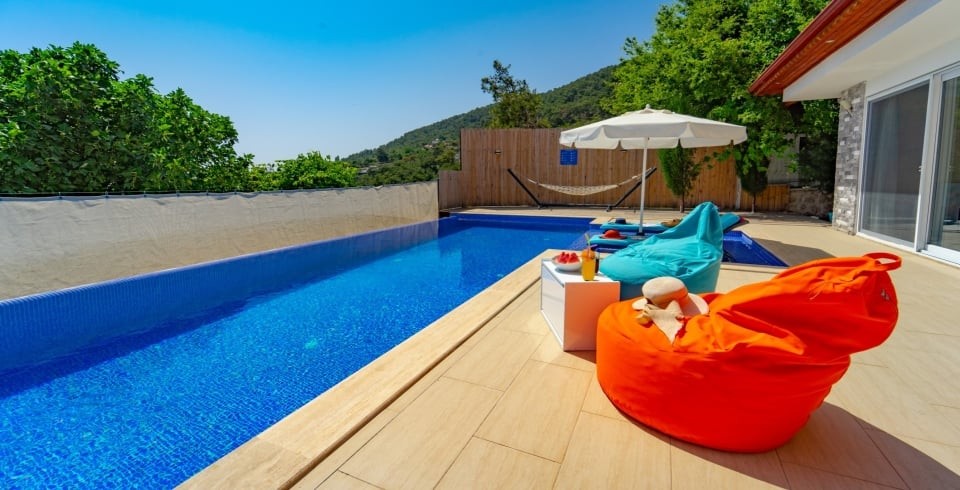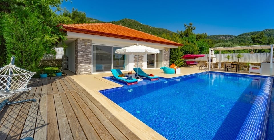 Kiralık yazlık villamız Kalkan İslamlar bölesinde konumlanmıştır. 1 yatak odalı 2 kişilik kapasiteye sahiptir. Balayı villası olarak dizayn edilmiş olup süit yatak odasında çift kişilik jakuzi bulunmaktadır. Doğa içerisinde olup sessiz sakin düğün sonrası sakinlik için birebir olan villamız özel yüzme havuzu ve havuz terası tamamen korunaklı ve muhafazakar haldedir. Oldukça geniş bahçeli yeşillikler içerisinde olan villamızın hem salıncak hem de hamak olması ekstra bir avantaj bulunmaktadır.