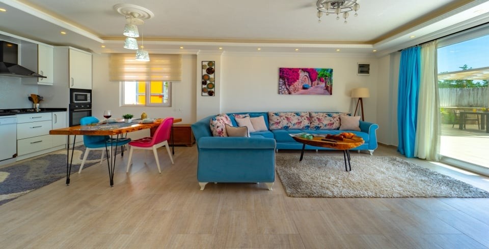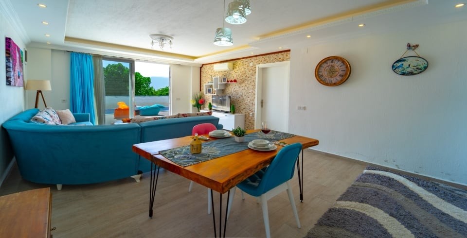 Salon : Geniş ve kullanışlı salonunda klima, TV, oturma grubu, ütü, ütü masası, lavabo bulunmaktadır.