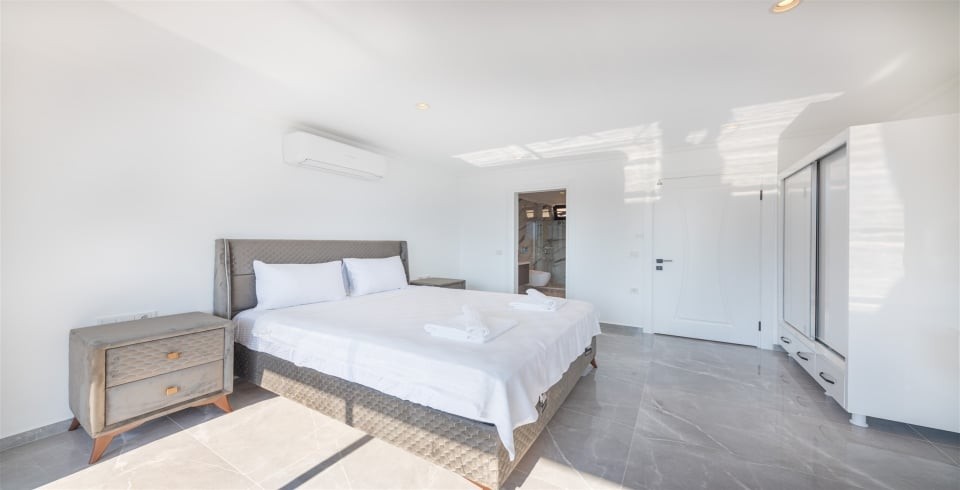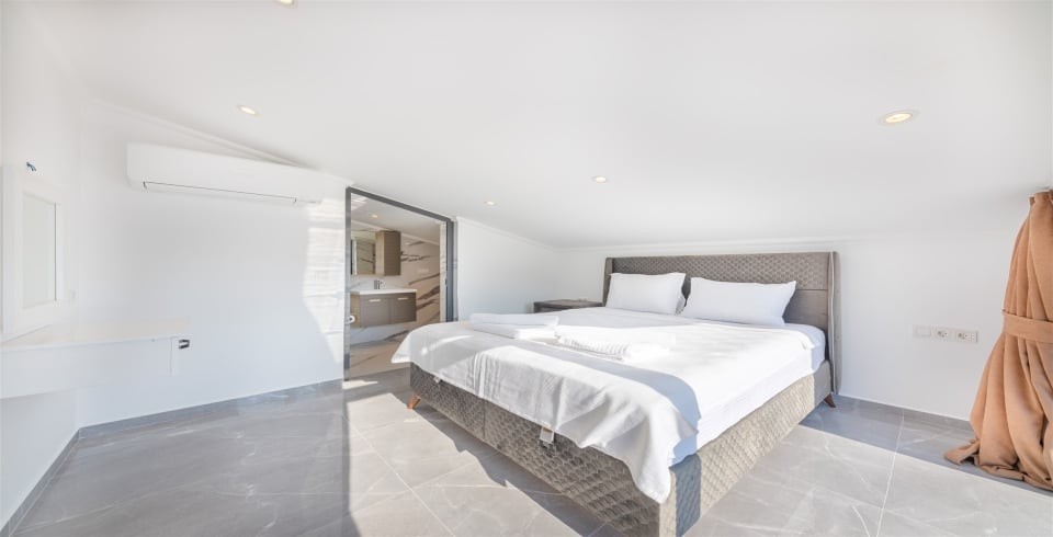 2. Yatak Odası : 1 adet çift kişilik yatak, klima, komodin, elbise dolabı, makyaj masası, banyo ve tuvalet bulunmaktadır. Teras bulunmaktadır teras içerisinde jakuzi bulunmaktadır.