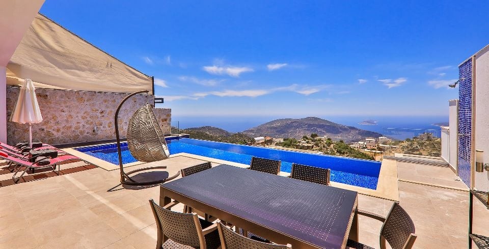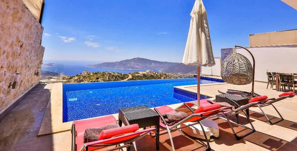 Villamız Kalkan Kördere mevkisin de konumlanmıştır. Kiralık villamız 2 yatak odalı 4 kişilik kapasiteye sahiptir. Villamız modern tasarımı olan 2019 sezonunda turizme açılmış yeni villamızdır. Villamız Kalkan merkeze 10 dk. uzaklıktadır. Deniz manzaralı olup havuz ve havuz terası muhafazakar hale getirilmiştir. Villa Vista balayı villası olup çift kişilik yatak odasında jakuzi ve ısıtma havuzu bulunmaktadır.