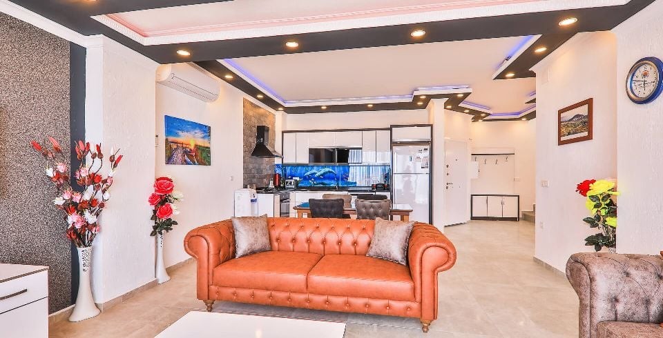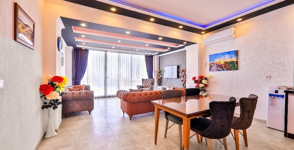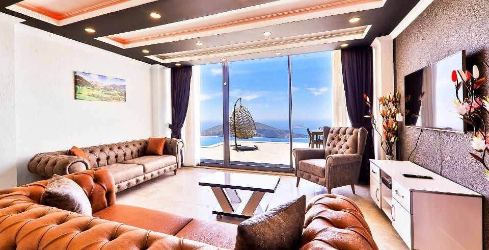Salon : Salon içerisinde oturma grubu, TV, klima, sehpa bulunmaktadır. Havuz terasına çıkış yapılabilmektedir.